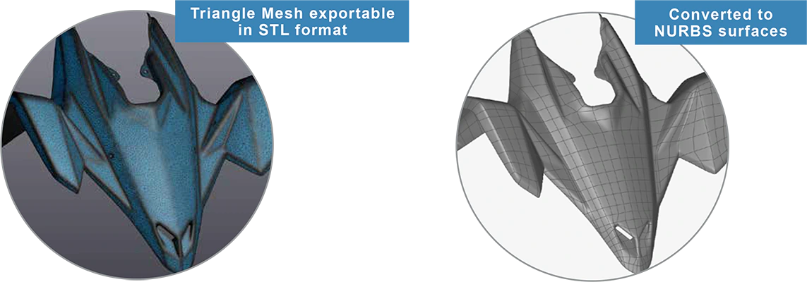 Mithilfe von Software lassen sich die Scan-Daten bereinigen, Lücken füllen, Fehler korrigieren und die Qualität verbessern. Das resultierende Dreiecksnetz wird meist als STL-Datei exportiert oder in NURBS-Flächen für die CAD-Modellierung umgewandelt.