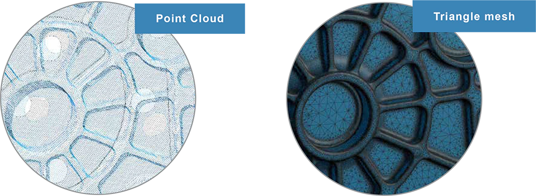 Les résultats sont représentés sous forme de données tridimensionnelles non structurées, comme des nuages de points ou des maillages triangulés. Certains scanners peuvent aussi enregistrer la couleur.